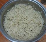 très fine versez le riz basmati et déposé la passoire dans un grand plat