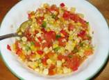 le maϊs dans le saladier avec les autres légumes. Faites de même avec