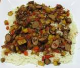 les tranches de saucisses, remuer le tout et cuire pour 1 minute.